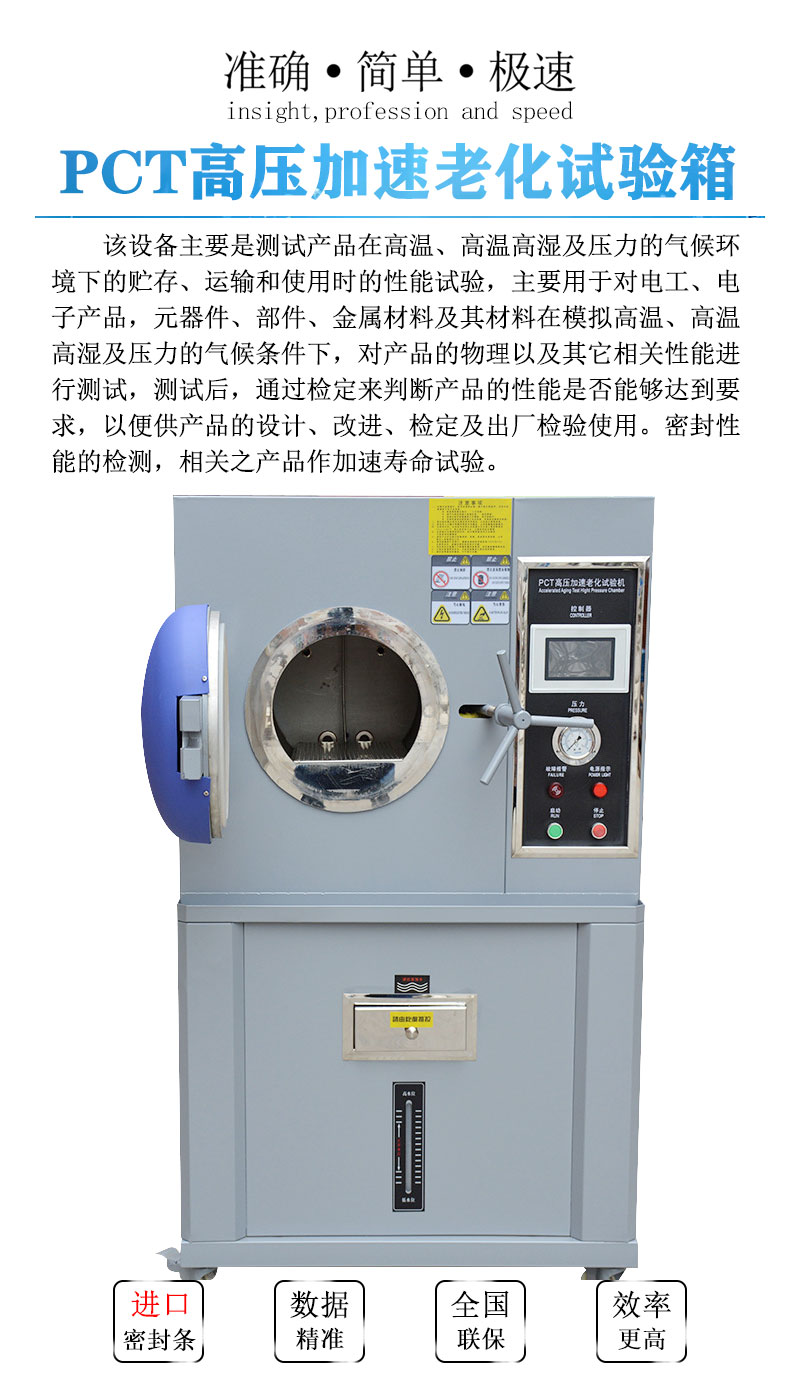 高溫高壓蒸煮儀適用于國防、航天、汽車部件、電子零配件、塑膠、磁鐵行業(yè)、制藥線路板,多層線路板、IC、LCD、磁鐵、燈飾、照明制品等產(chǎn)品之密封性能的檢測,相關(guān)之產(chǎn)品作加速壽命試驗,使用于在產(chǎn)品的設(shè)計階段,用于快速暴露產(chǎn)品的缺陷和薄弱環(huán)節(jié)。測試其制品的耐厭性,氣密性。