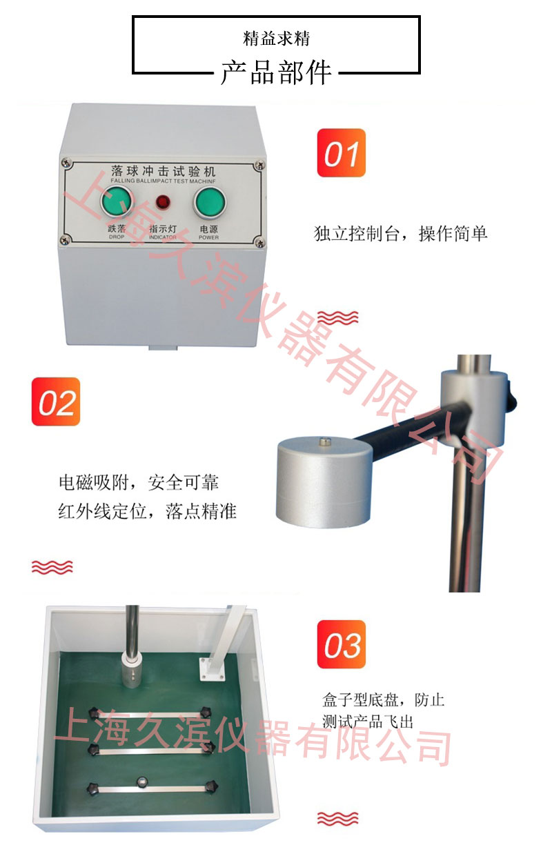 10、落球精度:小球在300mm高度落下偏移距離不超過4mm,大球在1000mm高度落下偏移距離不超過6mm