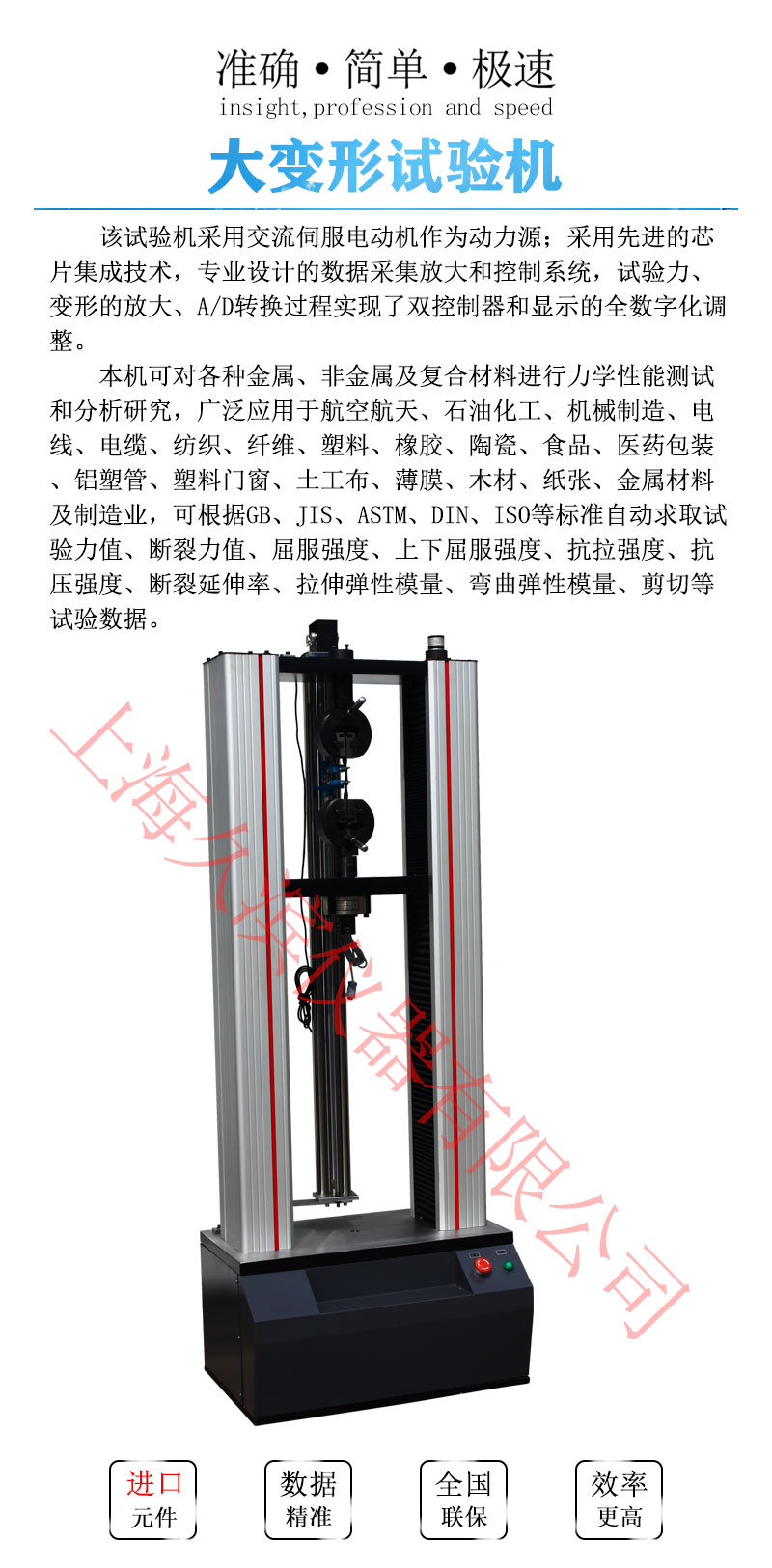 該試驗(yàn)機(jī)采用交流伺服電動(dòng)機(jī)作為動(dòng)力源;采用先進(jìn)的芯片集成技術(shù),專業(yè)設(shè)計(jì)的數(shù)據(jù)采集放大和控制系統(tǒng),試驗(yàn)力、變形的放大、A/D轉(zhuǎn)換過(guò)程實(shí)現(xiàn)了雙控制器和顯示的全數(shù)字化調(diào)整。
