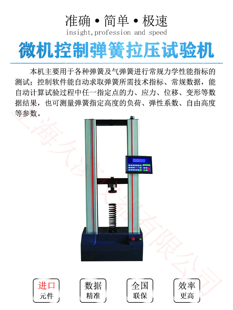 微機(jī)控制彈簧拉壓試驗(yàn)機(jī)是按照國(guó)家標(biāo)準(zhǔn)規(guī)定的彈簧試驗(yàn)規(guī)范而設(shè)計(jì)制造的專(zhuān)用測(cè)試設(shè)備。