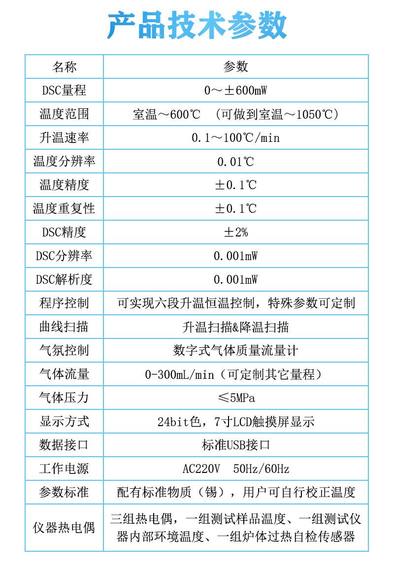 差示掃描量熱儀是一種測(cè)量參比端與樣品端的熱流差與溫度參數(shù)關(guān)系的熱分析儀器,主要應(yīng)用于測(cè)量物質(zhì)加熱或冷卻過(guò)程中的各種特征參數(shù):玻璃化轉(zhuǎn)變溫度Tg、氧化誘導(dǎo)期OIT、熔融溫度、結(jié)晶溫度、比熱容及熱焓等。