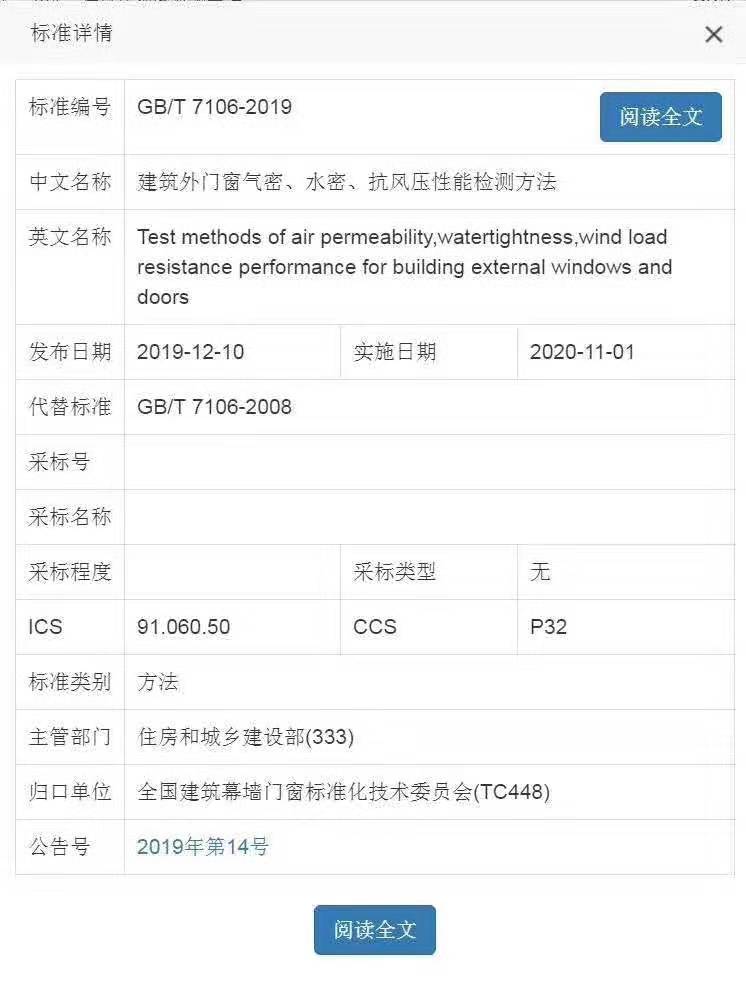 GB/T 7106-2019《建筑門窗氣密、水密、抗風(fēng)壓性能檢測(cè)方法》